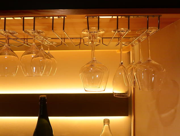 まるでワインバーのようにグラスがたくさんぶら下がっています。