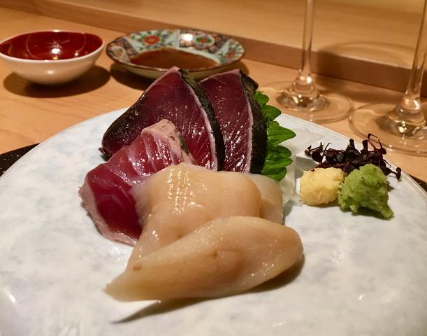 カツオのたたきとミル貝の刺身