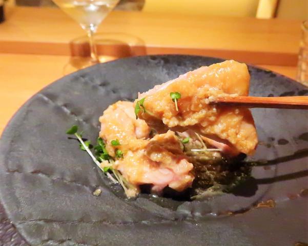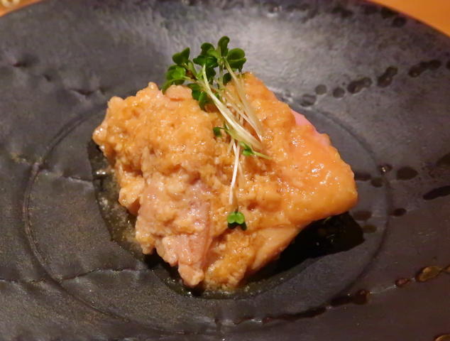 七層を醤油でしめたもの 柚子胡椒添え