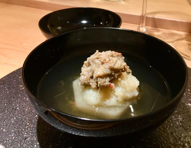 ズワイガニ蟹味噌とじゃがいも饅頭