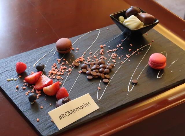 チョコ、マカロン、フルーツ。