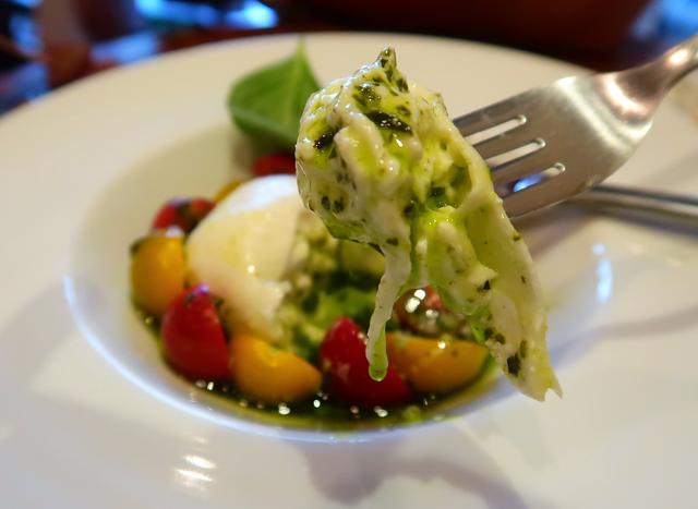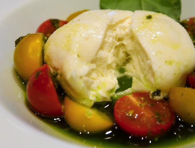 ブッラータは、生クリーム入りのモッツァレラチーズで、中のほうがミルキー!