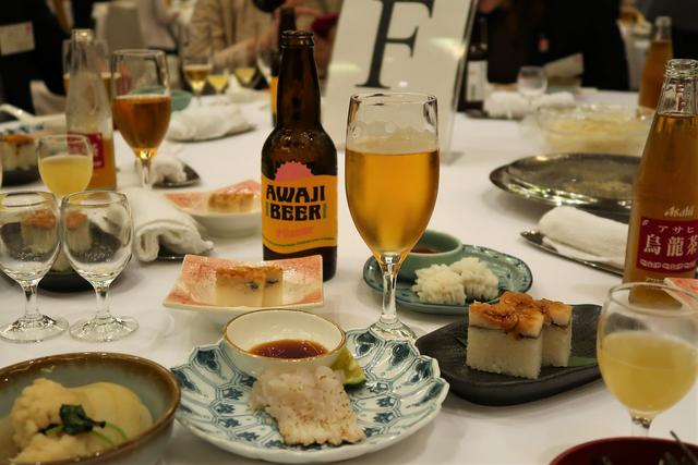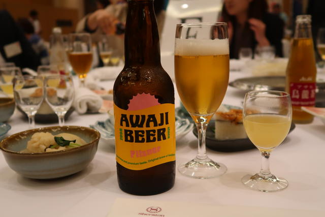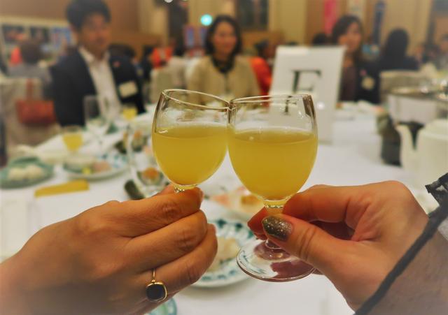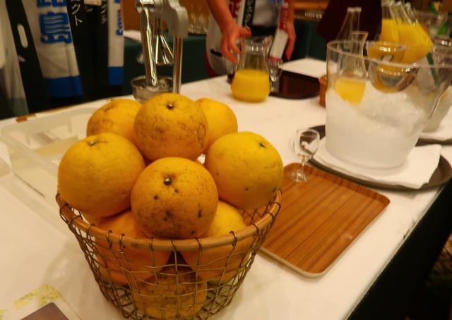 乾杯で飲んだカクテルには、絶滅危惧品種、淡路島土着の「淡路島なるとオレンジ」が使われていました。