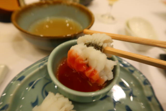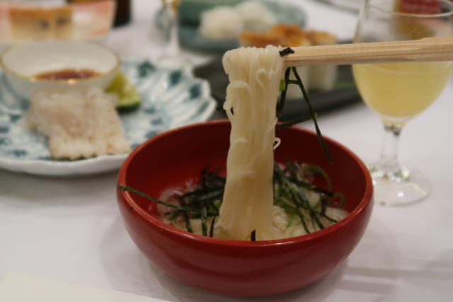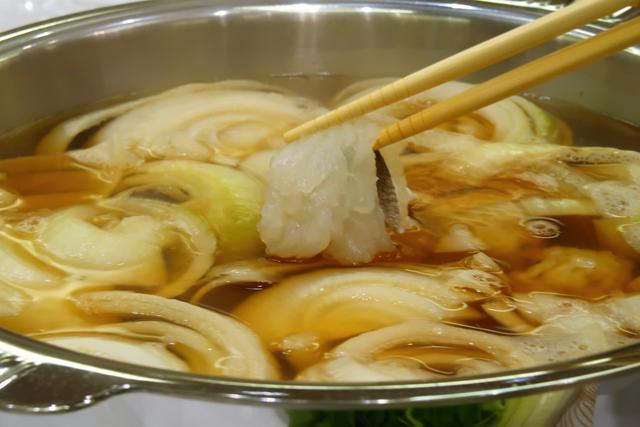 そうめんだしに似た感じの、はもの骨エキスたっぷりのお出汁に、まずは玉ねぎから。