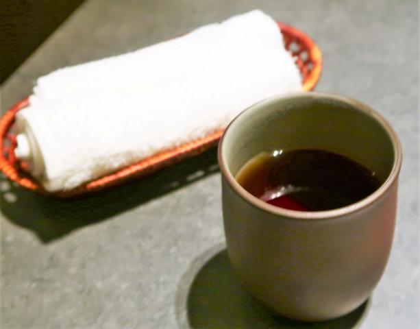 ミントの香りがとってもステキなおしぼりとほうじ茶。
