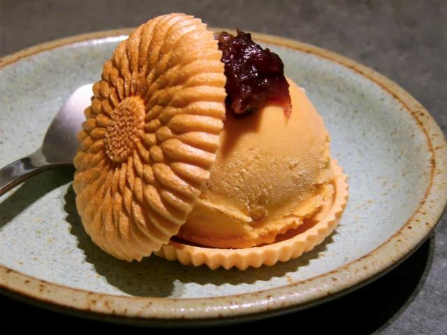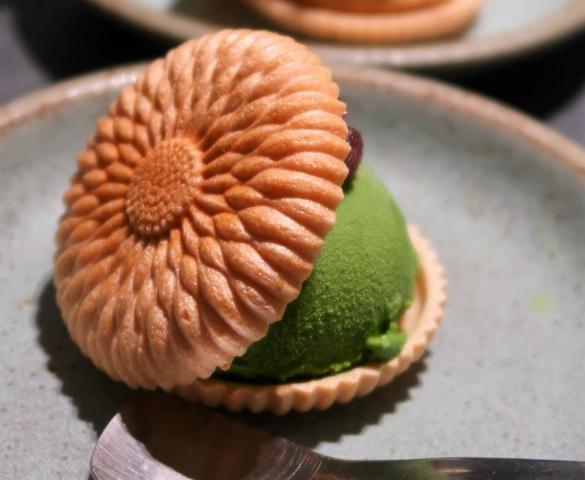 サクッとした薄いもなかに、抹茶が濃厚なアイスとあずき。