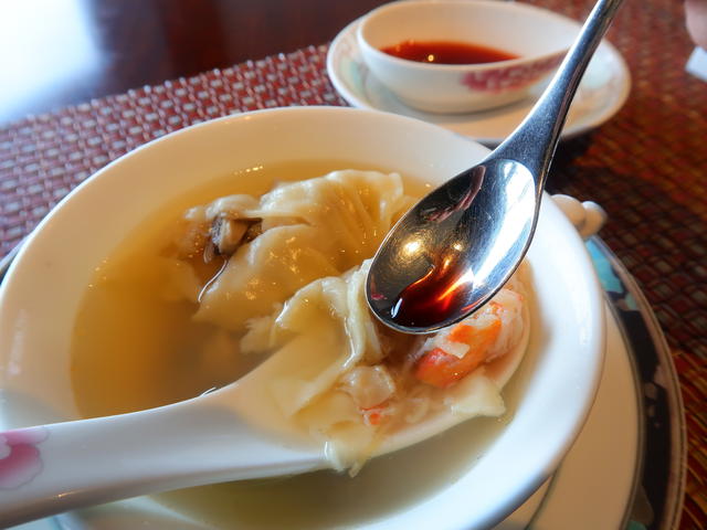 スープの旨味にうっとり〜。薄い皮を破るとカニの身やホタテ、干し貝柱のほぐし身がたっぷり入っていました!