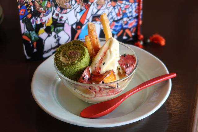 鳴門金時ソフトクリームにいろいろトッピングして和パフェを作りました。