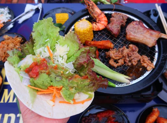 そのほか棒餃子や生野菜もあり、卓上で焼いたお肉を、タコスやトルティーヤで食べるのも楽しい。