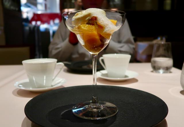 7品目はデザートで「マンゴーと柑橘のババ」。