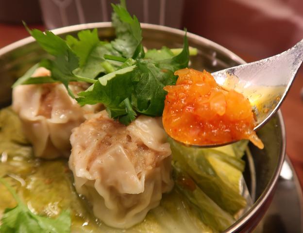 干し貝柱のかけらがほろほろと出てくるあっさりとした焼売で、