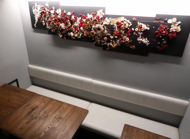 そこに女性作家による、八角・唐辛子などの中華スパイスとお花をアレンジした作品を飾ることにより、モダンでおしゃれなイメージになっています。