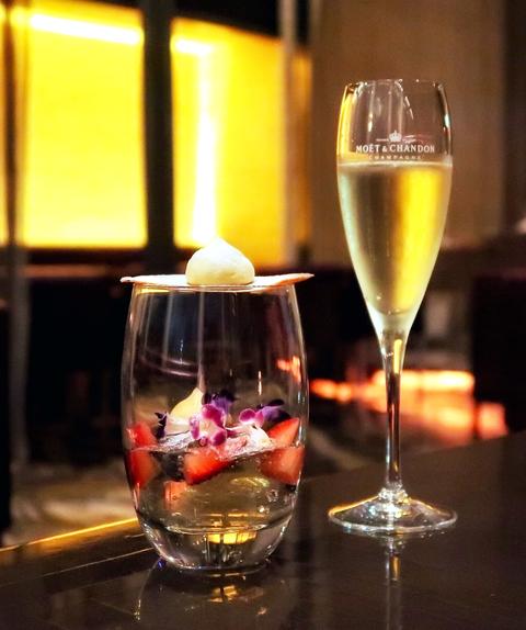 抹茶寒天やイチゴに入ったスパークリングジュレをまずは味わい、そのあとスパークリングをかけてマリアージュを楽しみました❣️
