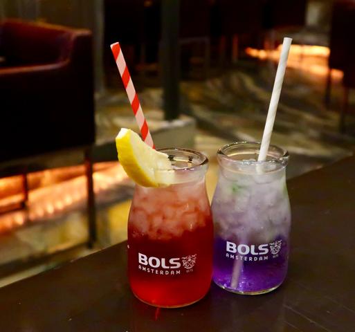 「ボルス レッド=スロージン チェリーブランデー」と「ボルス バイオレット=パルフェタムール」たっぷりぐびぐび飲める感じ。