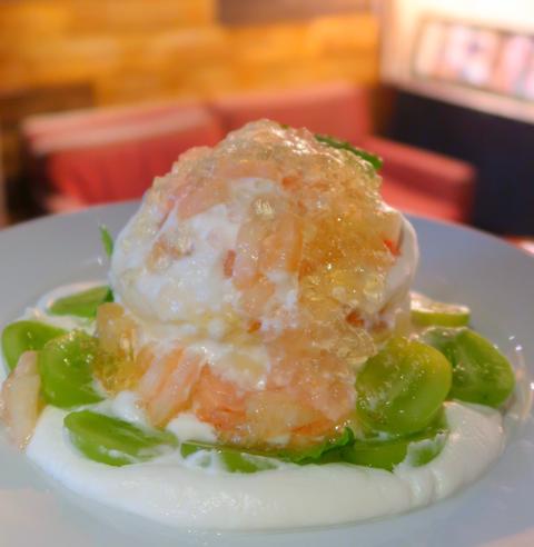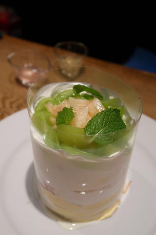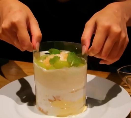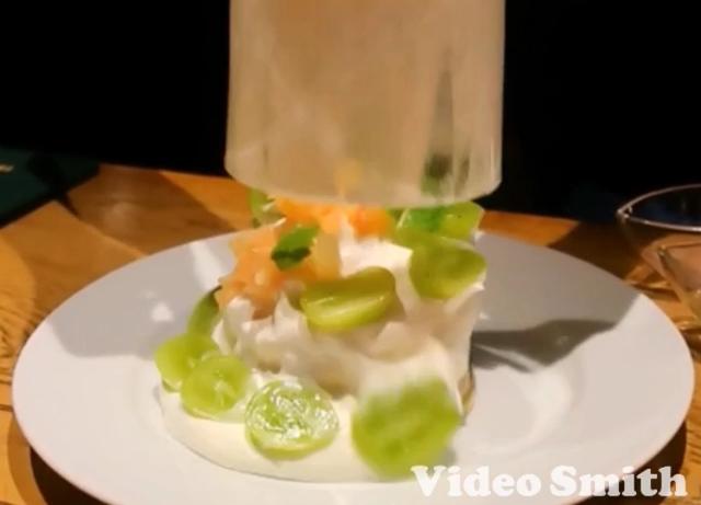 さらにジェル状のマスカットソースと桃のソースもかけて出来上がり✨