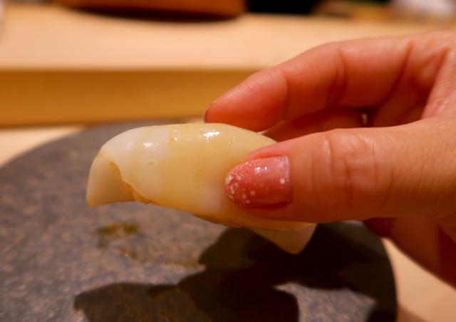 最初のお寿司はスミイカの子供、新イカ!