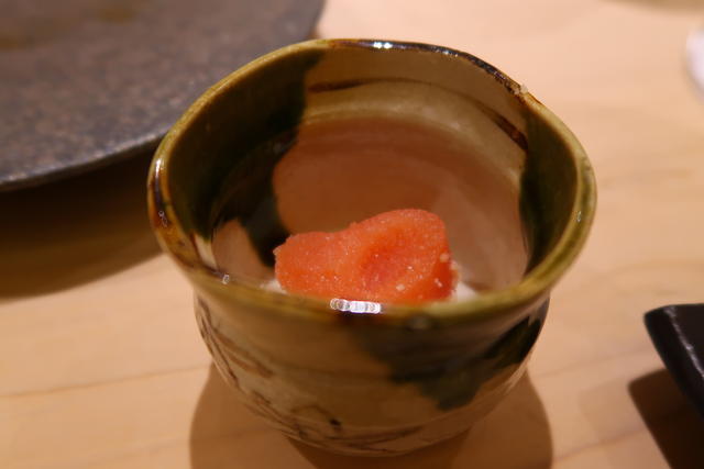 味的にも大葉から梅へとつながる。きめ細やかでなめらか、具のないシンプルな茶碗蒸しも良いな♪