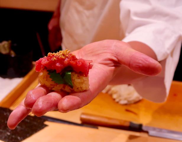 赤酢と白酢を合わせたシャリは握らずふわっと。