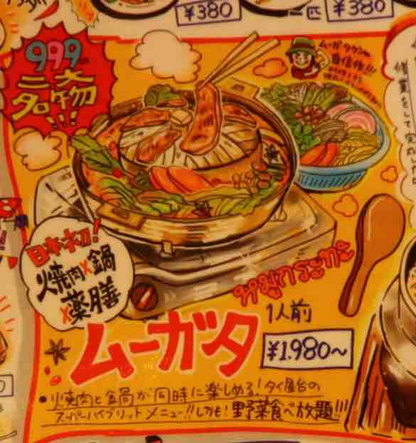 「ムーガタ」という日本初「焼肉と鍋が同時に食べられる薬膳鍋」は3Fのみで食べられます。