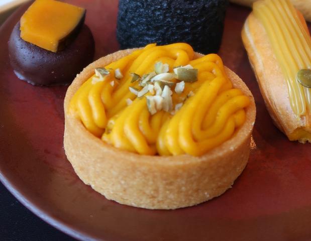 シェフイチオシのスイーツは「パンプキンタルト」。