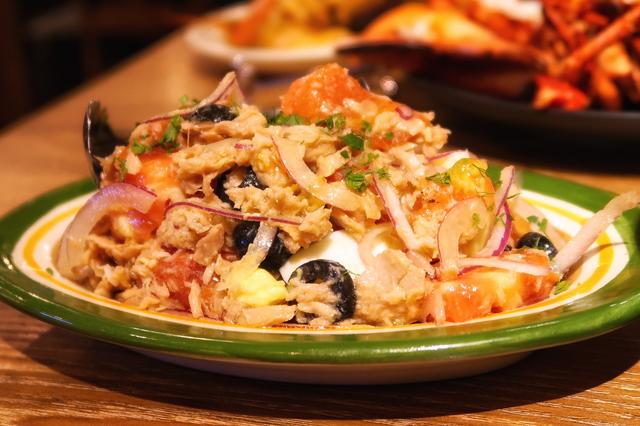 スペイン南東部の都市「ムルシア」の名をとったサラダはオリーブや玉葱も入った南欧風。
