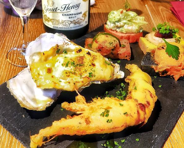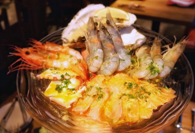 いろんな海老やサーモンや牡蠣の盛り合わせでした。