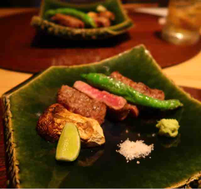 焼き松茸と山形牛サーロイン炙り。