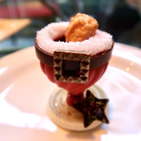 「クリスマスグラスデザート」は、生クリーム、チョコクッキー、グリオットチェリー、フランボワーズゼリー、チョコレートソース!