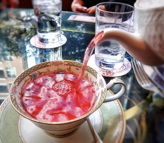 ピンク色に合わせて、レッドジンガーのハーブティーをいただきました。