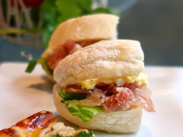 玉子サラダと生ハムのイングリッシュマフィンサンド