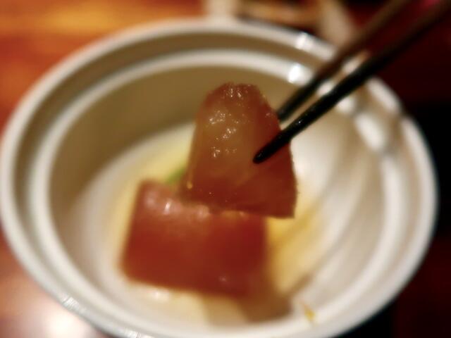 赤身の部分を2種類の切り方で味わいを変えて。