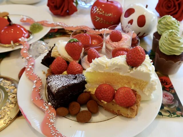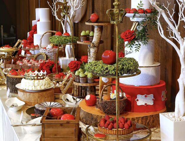 約30種類の白雪姫のデザートと、魔女のセイボリーが並びます。