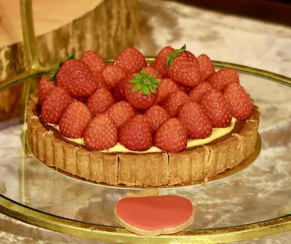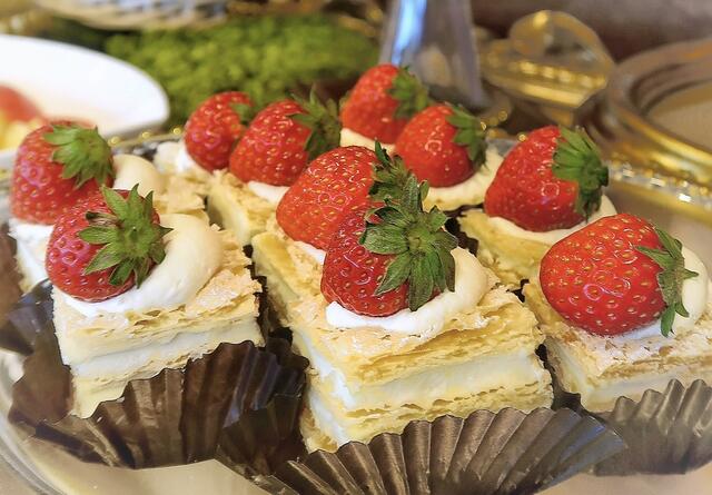 苺たっぷりのタルトをはじめ、かわいくてフルーティーなスイーツがずらり。