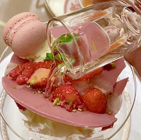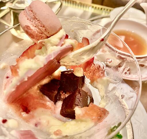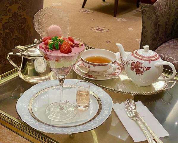 すっきりと飲みやすく調合された特別な紅茶で、ブドウ、オレンジ、バニラといった様々なニュアンスを持つ心地よい香りが、デザート全体を引き立てるそうで美味しい!