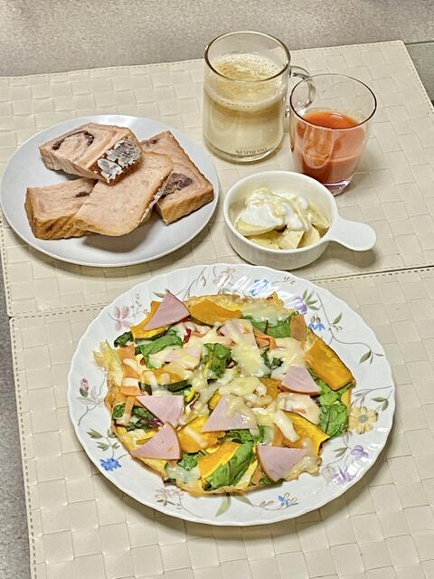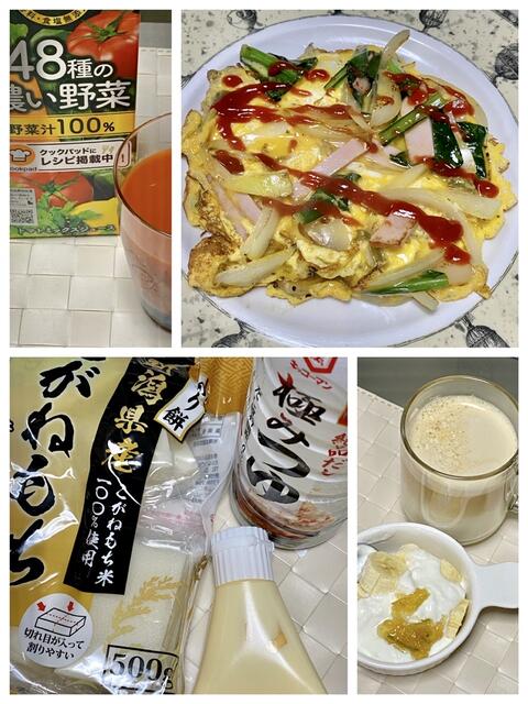 オープンオムレツとお餅の朝。