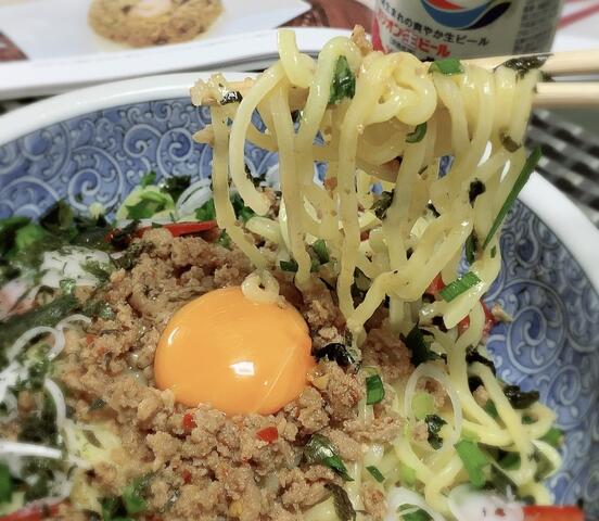 ピリ辛肉味噌と卵黄も良いコンビ👍🏻