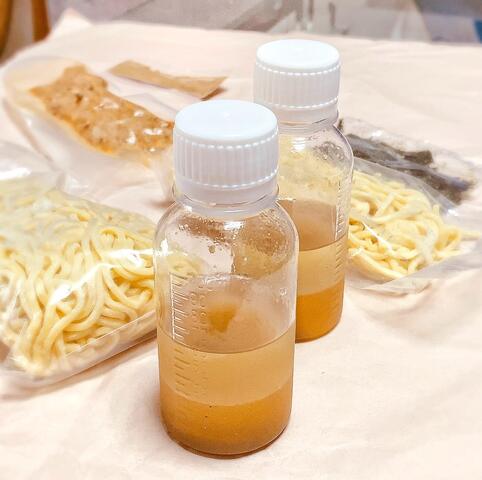肉味噌、ネギ、ニラ、魚粉、刻み海苔、卵黄をのせて完成❣️