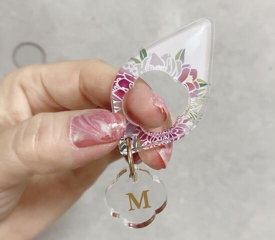 いろんな形や柄があり、イニシャルプレートをつけることもできるの。