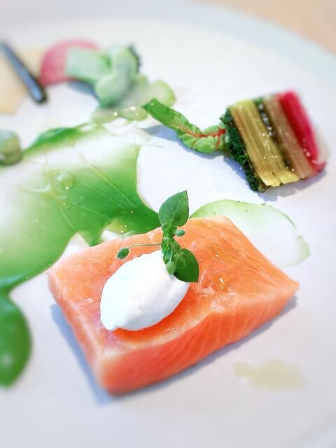 サーモンを5時間かけて低温調理したものを