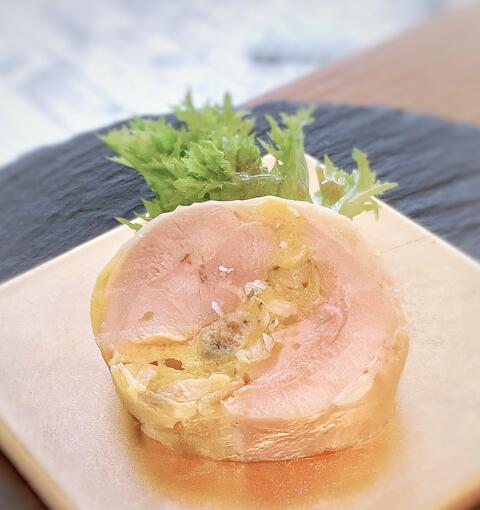 アサリのサフランムースをつめたガランティーヌ