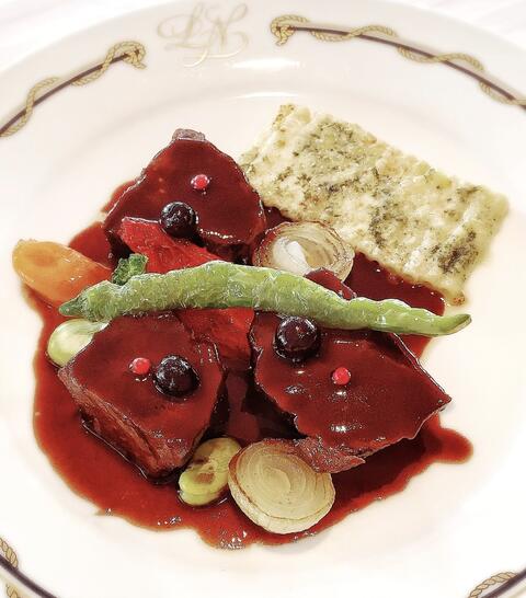 カシスの酸味と粒胡椒がアクセント。