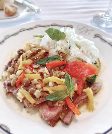 ウイキョウとパッションフルーツのソースで酸味とエキゾチックな甘さが加わり夏らしい。