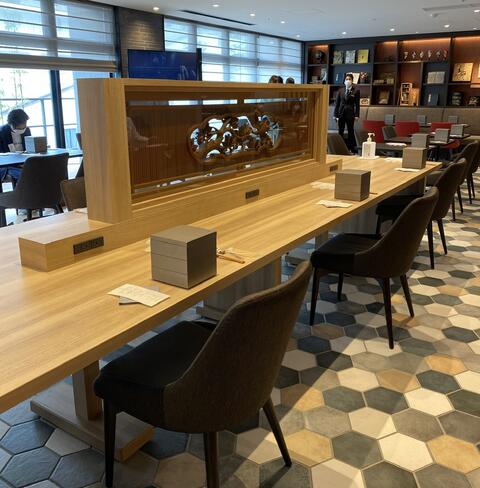 ドリンクやお替りのパンなどはブッフェスタイルですが、席を立つときはマスク着用が決まり。