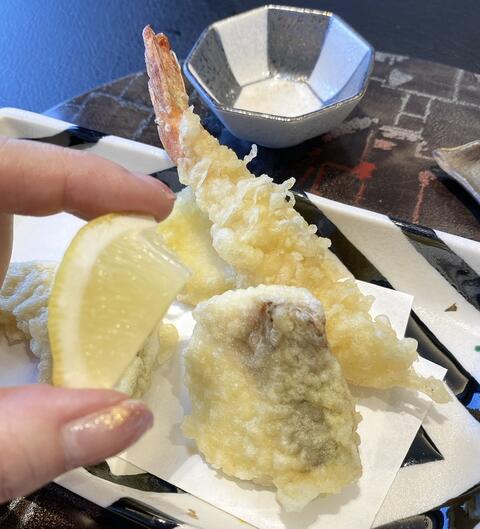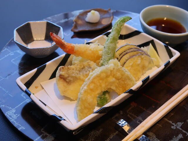 [揚物]天ぷら盛合せ(海老、烏賊、白身肴、大阪府富田林市産茄子・甘長、大阪府泉北産南瓜)