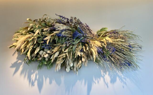 壁に飾られたアートはお魚の形。