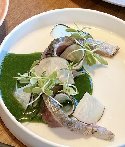 オアカムロと春菊のソース
