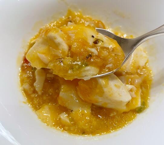 見た目は「卵とじ」のようですが辛い🤣