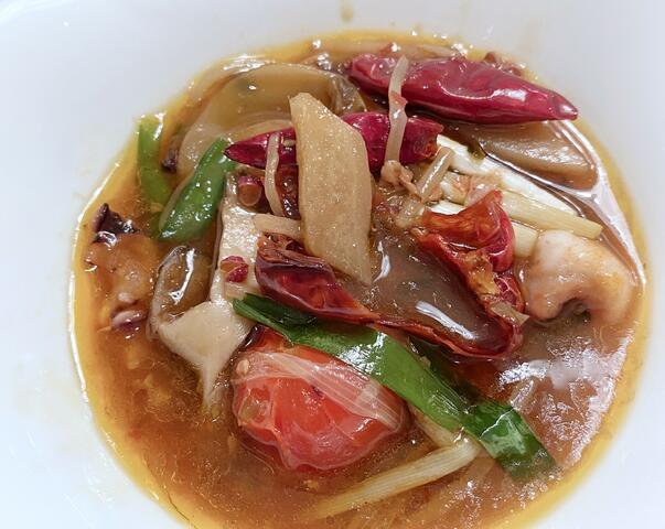 タコの地獄煮 三種の旨辛辣醤(ラージャン)スープ