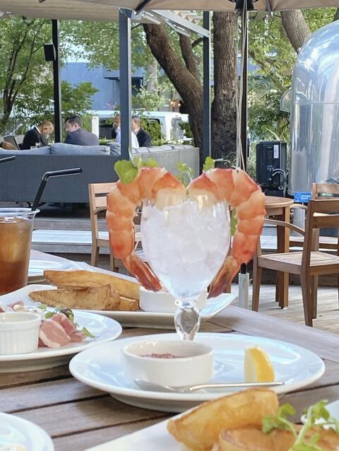 都会のテラスでクラフトビールと薪焼きのお肉!