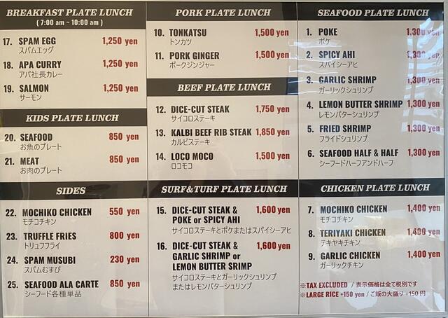 ハワイで人気の「ロコモコ」「ポークジンジャー」「ポケ」などいろいろあって迷っちゃう~。